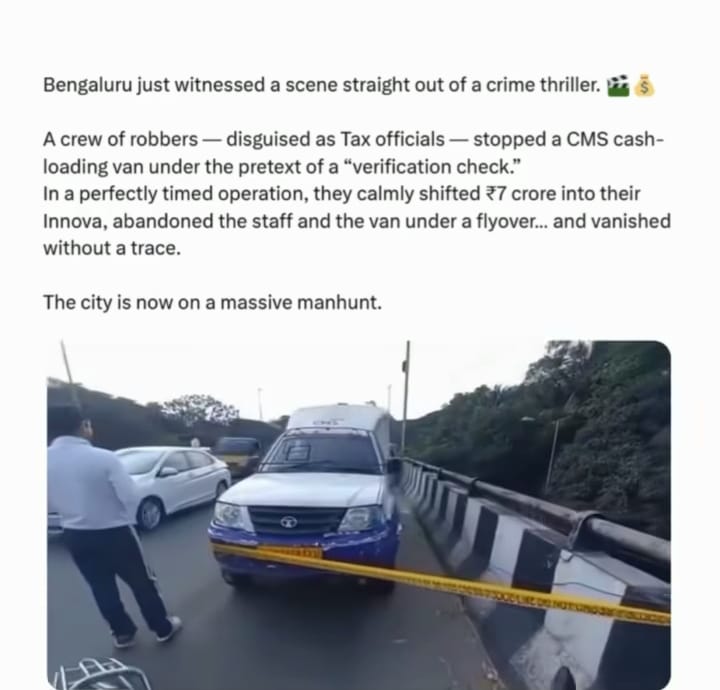 Bengaluru witnessed one of the most daring robberies in its recent history when a group of men, disguised as Reserve Bank of India (RBI) officials, executed a high-precision heist and escaped with over ₹7 crore in broad daylight. The incident unfolded within a tight 30-minute window—yet its impact has left the entire city stunned. With calculated movements, professional impersonation, and impeccable timing, the criminals demonstrated a level of sophistication rarely seen in city crimes.
