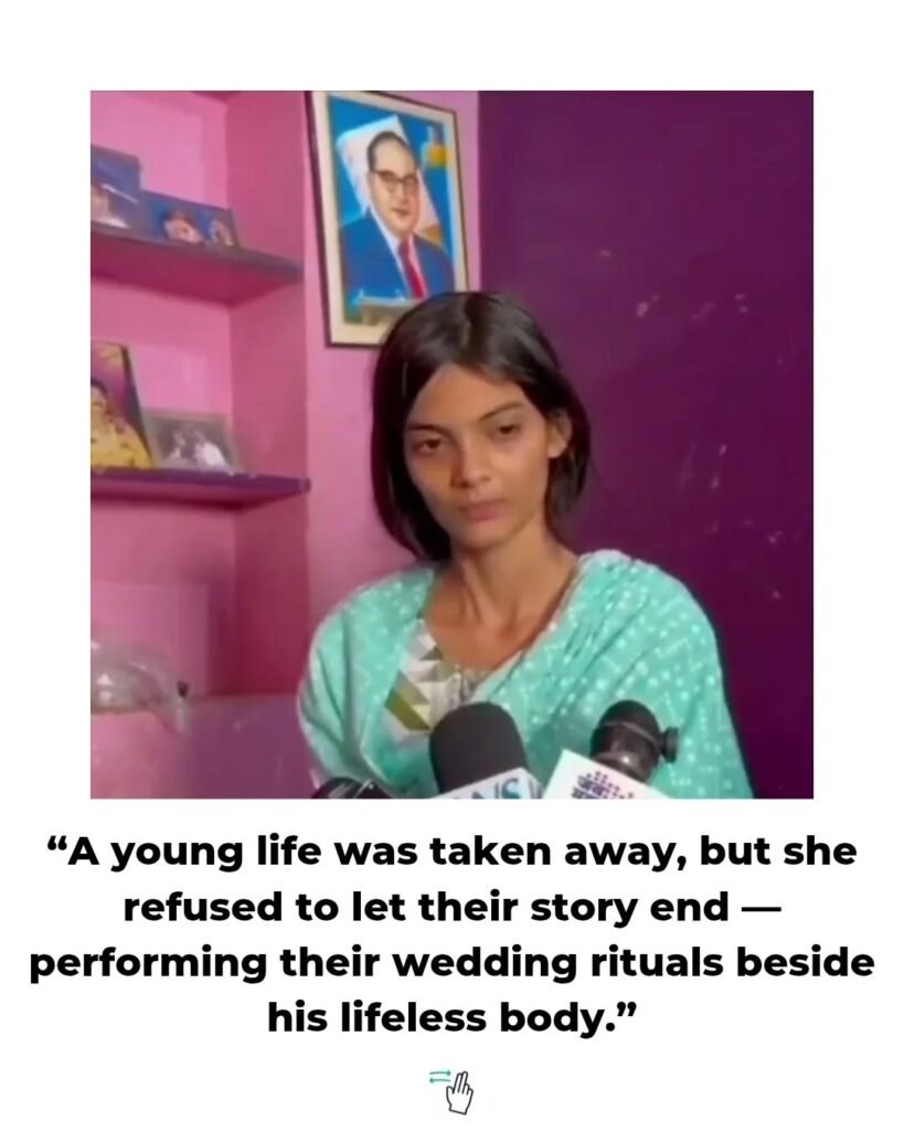 In a heart-wrenching scene captured by local news crews, the girl arrived at the cremation site escorted by police and women’s rights activists. Overcome with grief, she placed a garland on her boyfriend’s body and performed symbolic wedding rituals.