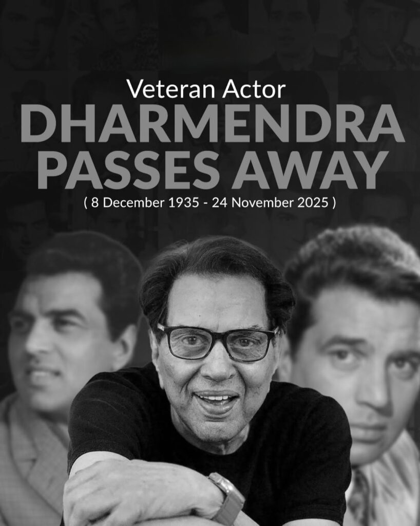 Dharmendra may have left the world physically, but legends like him don’t fade away. His voice, his smile, his power-packed dialogues, his iconic romantic scenes, and his unmatched on-screen aura will continue to live in hearts, screens, and stories.A life like his doesn’t end. It simply becomes eternal.