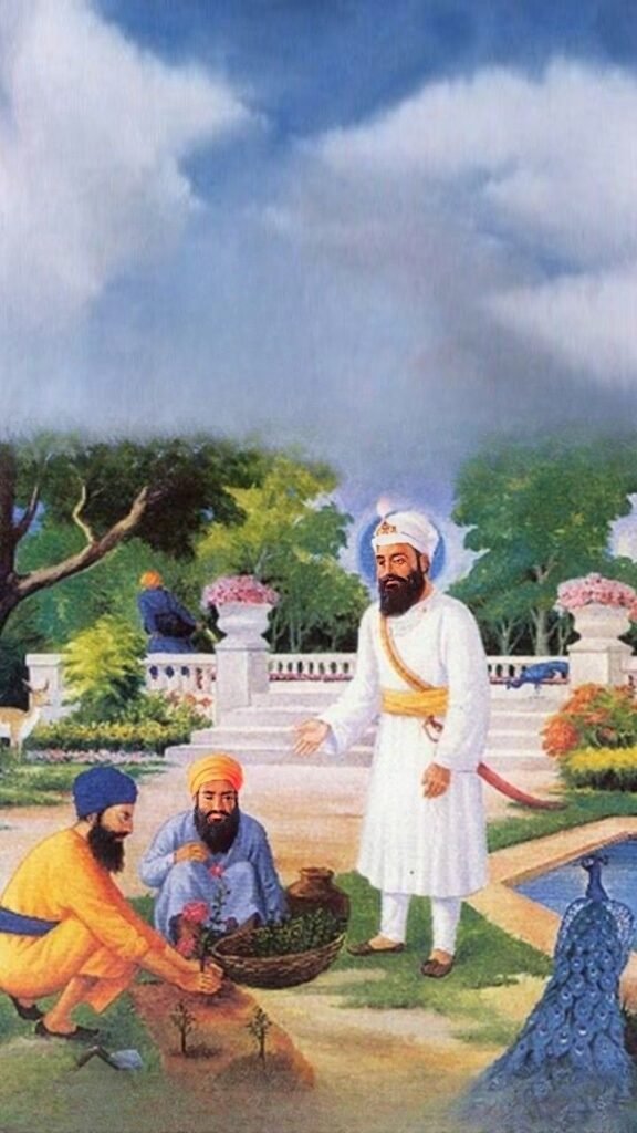 Guru Har Rai Ji is especially remembered for his deep love for nature. He maintained large gardens filled with herbs, flowers, and trees. He taught Sikhs to protect the environment, treat animals kindly, and live in harmony with nature.